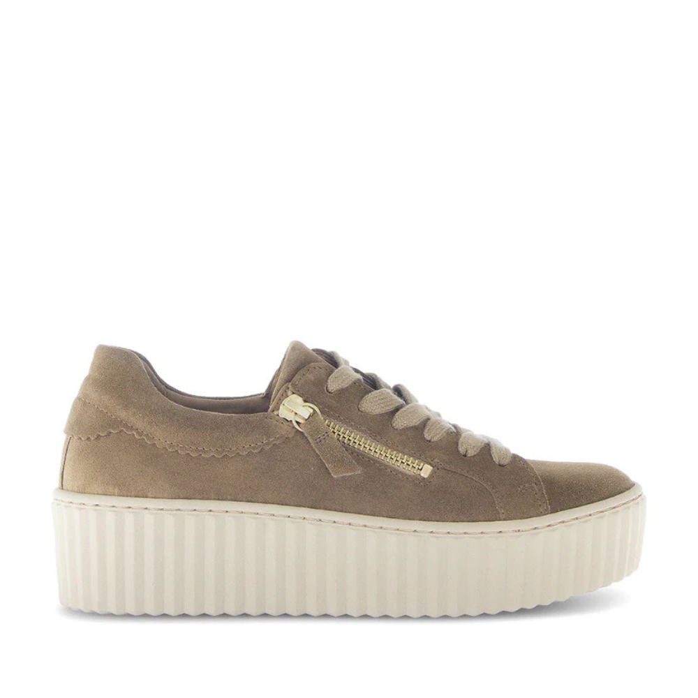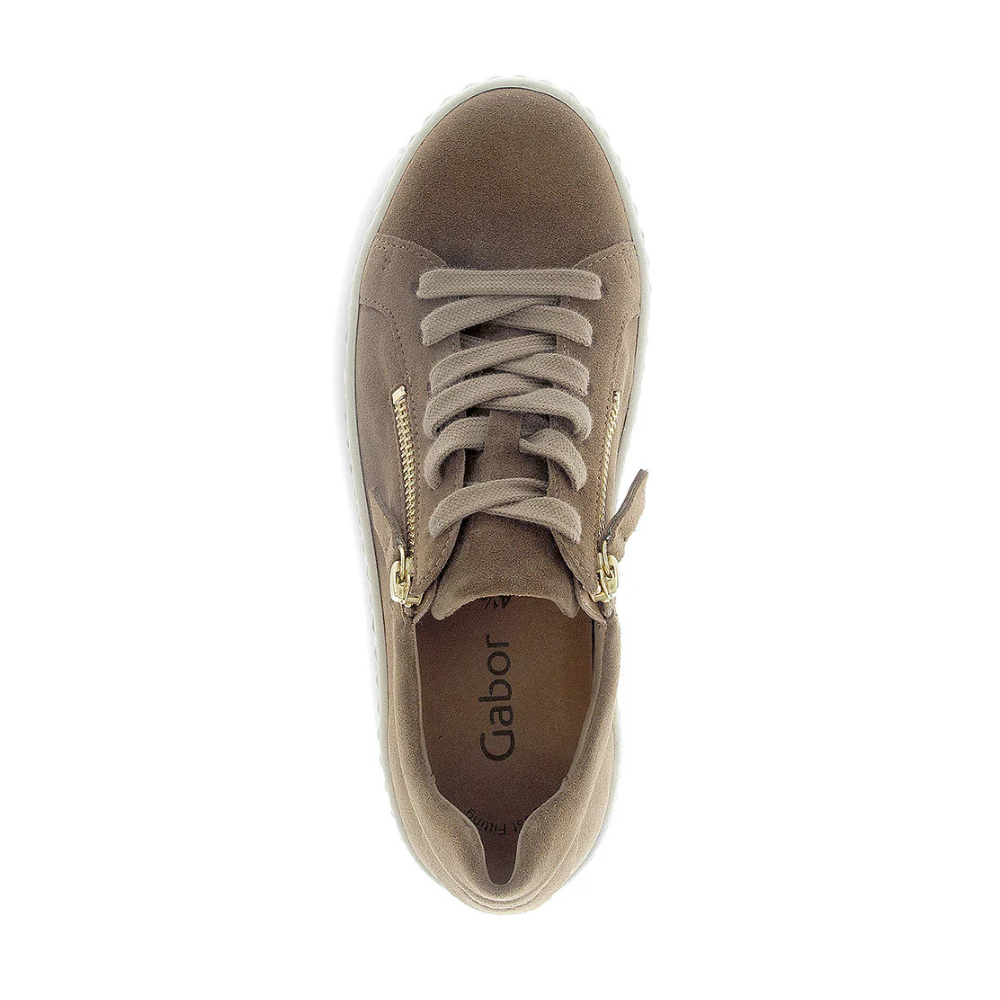 Lightweight platform walking shoe from Gabor with double zipper accents. The 73200-14 can be worn for all lifestyle uses providing long comfort. The removable insole is light and cushioned. The unique sole offers a soft landing while also providing a firm push off.