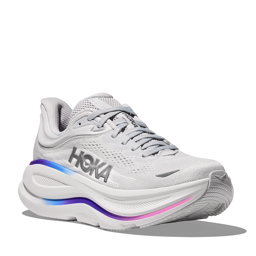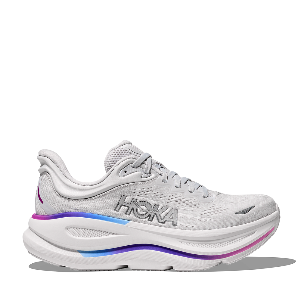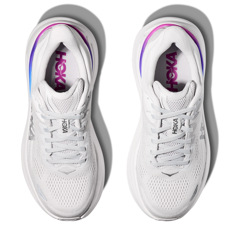 The Bondi 9 by Hoka One One is part of the road-shoe collection and is the most cushioned option. The full EVA midsole provides a smooth and balanced stride. The mesh upper is at once breathable and comfortable. The Meta-Rocker technology is designed to provide a consistent gate for your smoothest run.