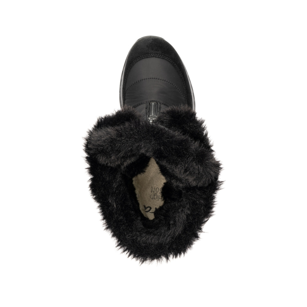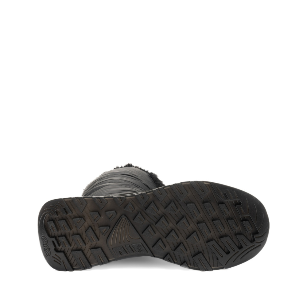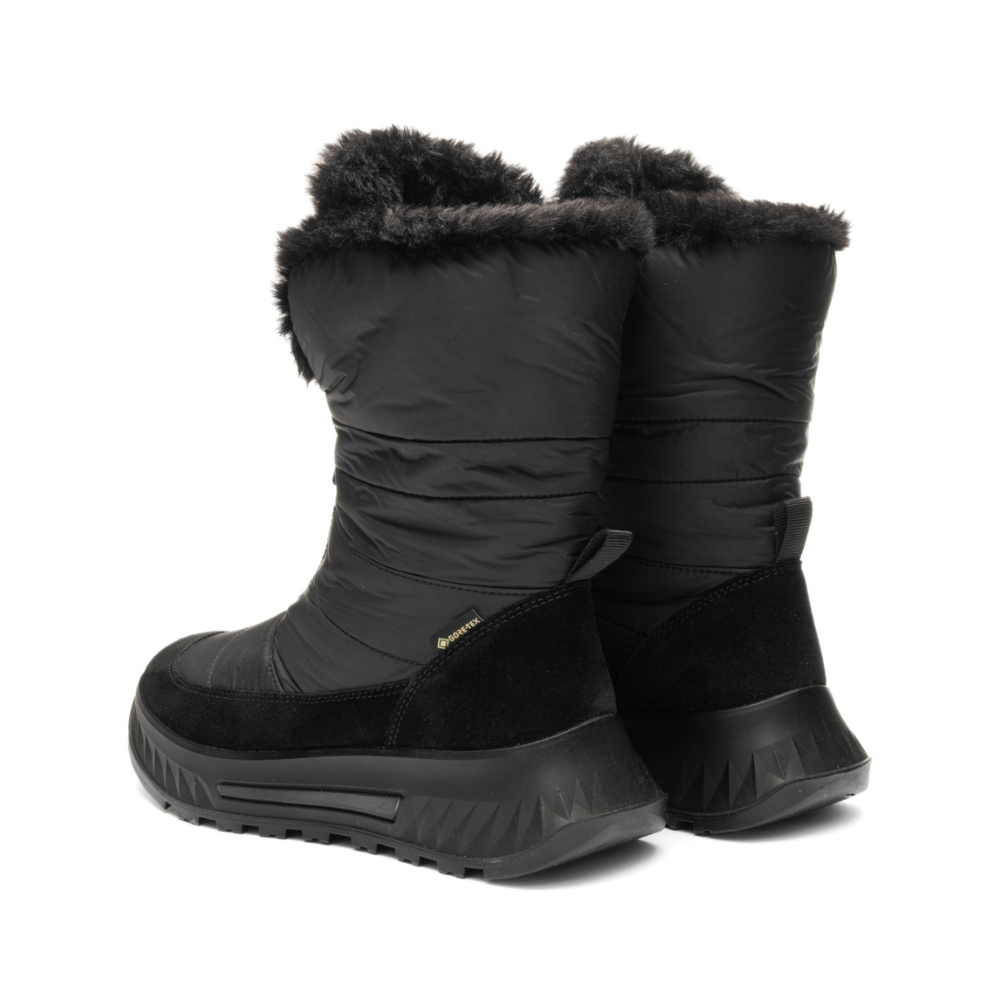 Gore-Tex black quilted boot, fully waterproof to keep you cozy in wet and cold weather. Front zipper in the front for an easy fit, and a warm lining throughout. Athletic inspired platform sole with traction.