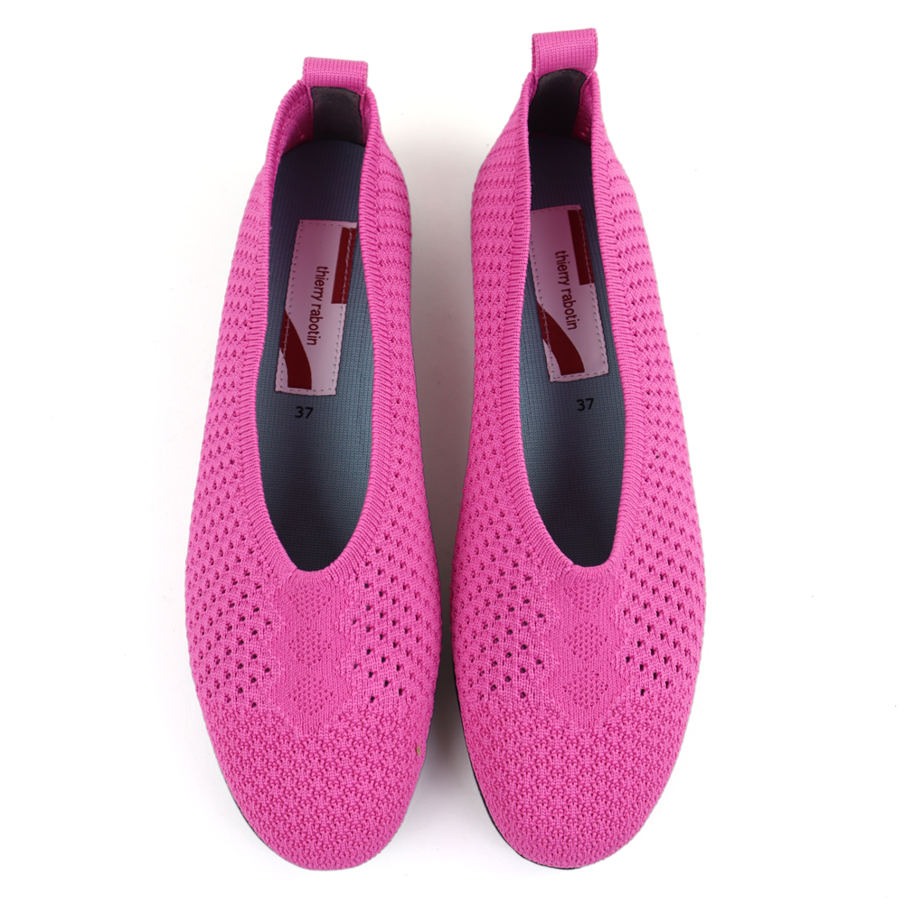 The V0002M flat is an adorable flat from Thierry Rabotin with a sustainability story. This women's flat is made from recycled plastic bottles turned into a woven knit. The cut comes up over the forefoot preventing irritation on the toe joints. An unbeatable, timeless and comfortable women's ballet flat from Thierry Rabotin.
