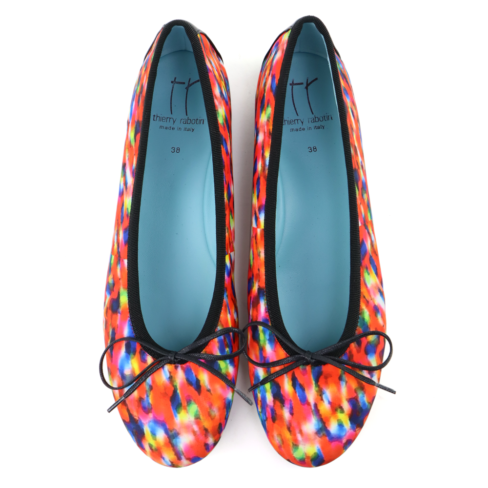 The Glenda 7453 flat in the red multi print from Thierry Rabotin is part of the Modern Print Collection. Made with a soft stretch fabric in the playful spiral print, created in Italy in collaboration with Peter Hanig. The sacchetto technique creates a smooth interior and a streamlined fit. An unbeatable, comfortable flat from Thierry Rabotin.