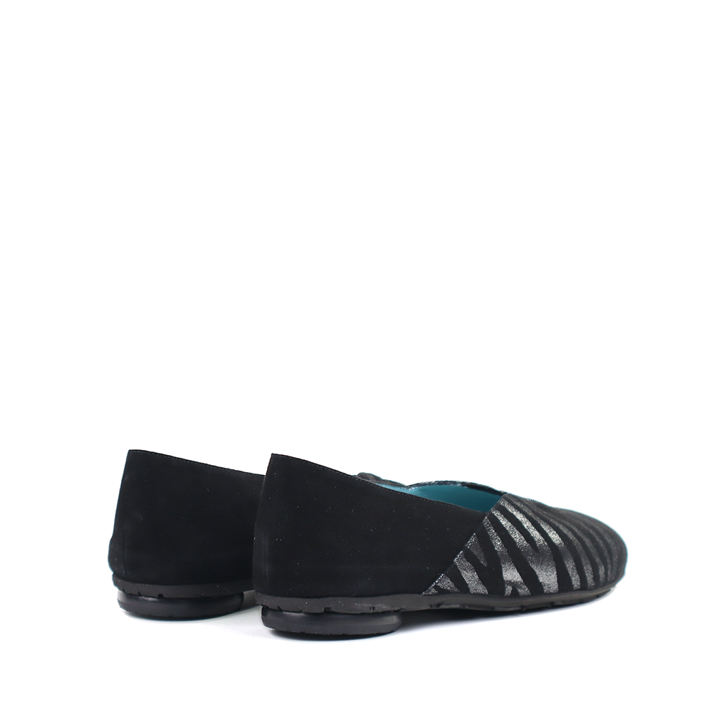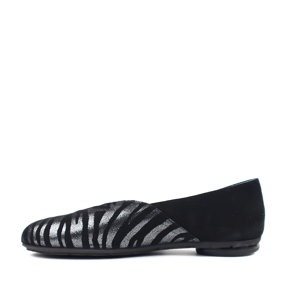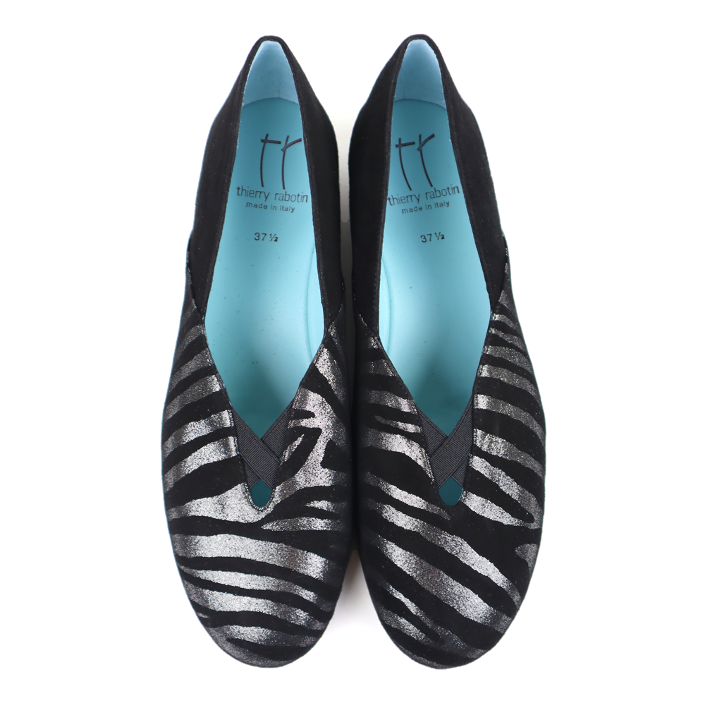 The Gracie 1587 flat is a new favorite. The upper is a new silver zebra print. The sacchetto technique creates a smooth interior and a streamlined fit. The cut comes up over the forefoot preventing irritation on the toe joints. An unbeatable, comfortable flat from Thierry Rabotin.
