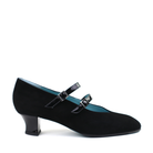 The Rosette 4559FBR heel is a cute mary jane with a double strap. The upper is a black suede with patent cap toe. The sacchetto technique creates a smooth interior and a streamlined fit. The cut comes up over the forefoot preventing irritation on the toe joints. An unbeatable, comfortable flat from Thierry Rabotin.