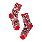 Romantic red roses meet vintage inspired cameo jewelry in our Cameo Rose sheer sock. Featuring a red and pink color palette with an elegant dash of black, this fancy sock will take you from holiday season to Valentine's Day. Complete with a subtle shimmery red cuff, heel, and toe for all your dressy occasions.