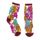 Step into a jeweled botanical fantasy in our Gem Garden Sheer Crew Sock, featuring Fall foliage and florals bursting with saturated jewel tones. A romantic deep merlot cuff, heel, and toe anchor the sock’s vibrant embroidery: golden marigolds, magenta pansies, and turquoise leaves bloom boldly across a delicate sheer base. The high-contrast color palette is equal parts vintage tapestry and maximalist dream.