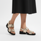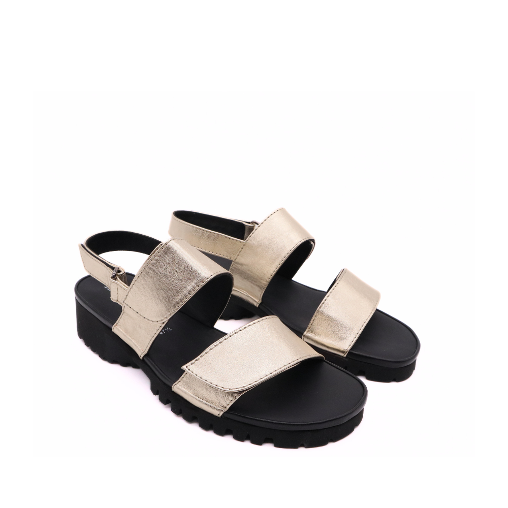 Sporty meets sparkle in this easygoing sandal. The Sanele's metallic leather straps add a touch of shine, while the cushioned footbed and sculpted sole keep every step comfortable. Adjustable, lightweight, and ready for all-day wandering - this is your go-anywhere summer sandal with a little extra glow.