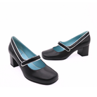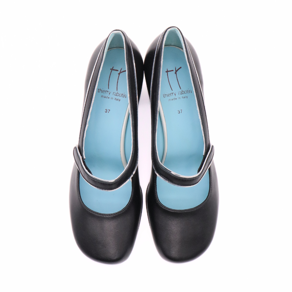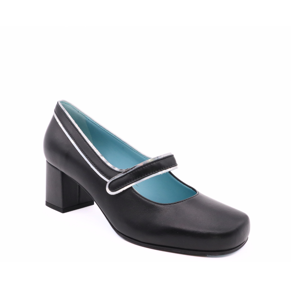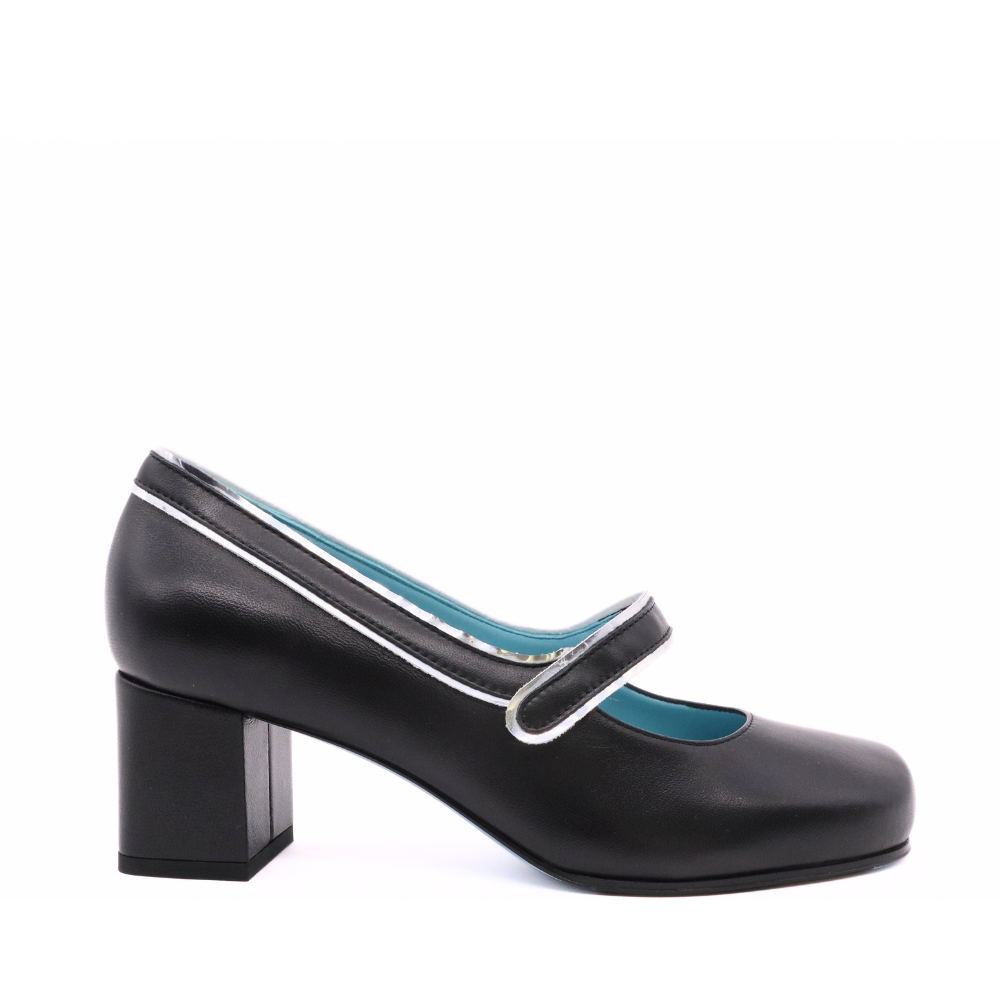 The Mila heel pairs a soft rounded toe design with smooth black nappa and a mirror contrast trim for a striking finish. The Velcro mary jane strap adds an adjustable fit, while the sturdy block heel offers confident, all-day wear.