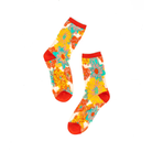 Sock Candy creates playful prints with a sheer fabric base. Vivid orange-red, sunny yellow, and striking aquamarine flowers burst against a sheer backdrop, creating the perfect harmony of funky and elegant.