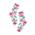 Sock Candy creates playful prints with a sheer fabric base. Featuring a playful mix of green, purple, and pink tennis rackets, with a pink ruffle cuff for an ultra-feminine touch.