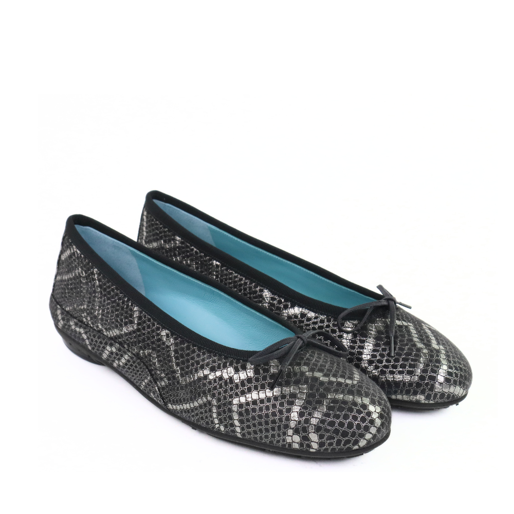 Classic with a wink. The Gem flat adds a playful twist with its chic snake-print shimmer and sweet functional bow detail - soft, flexible, and ready to dance through your day.